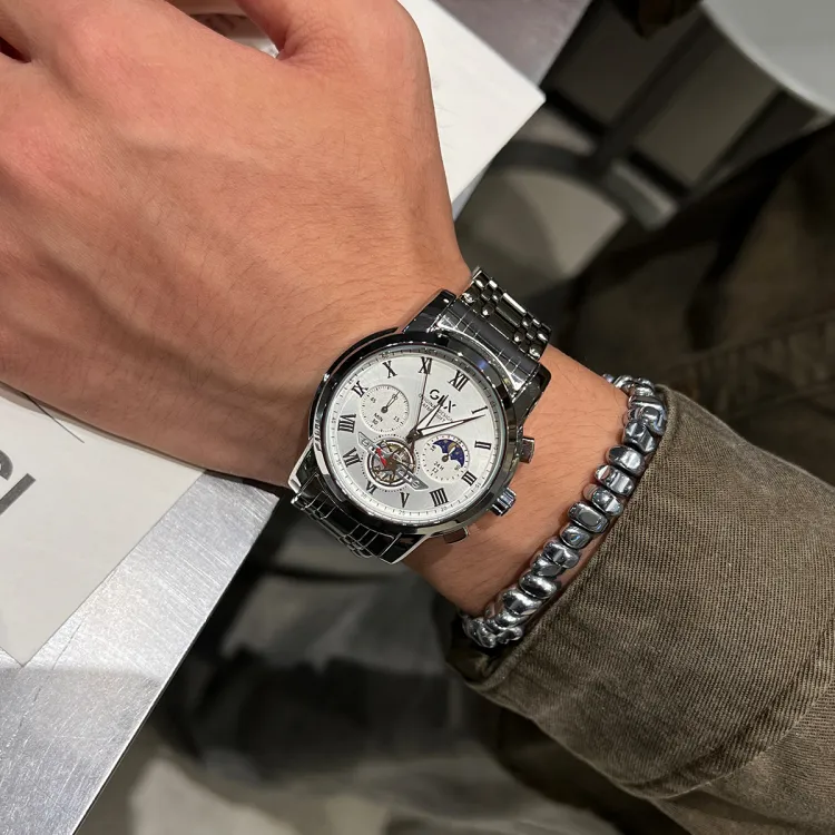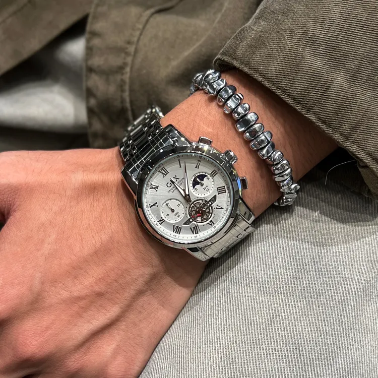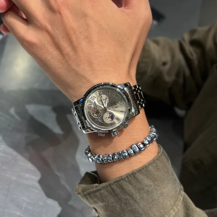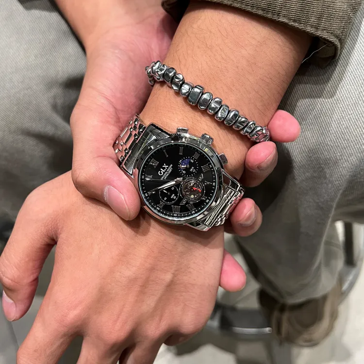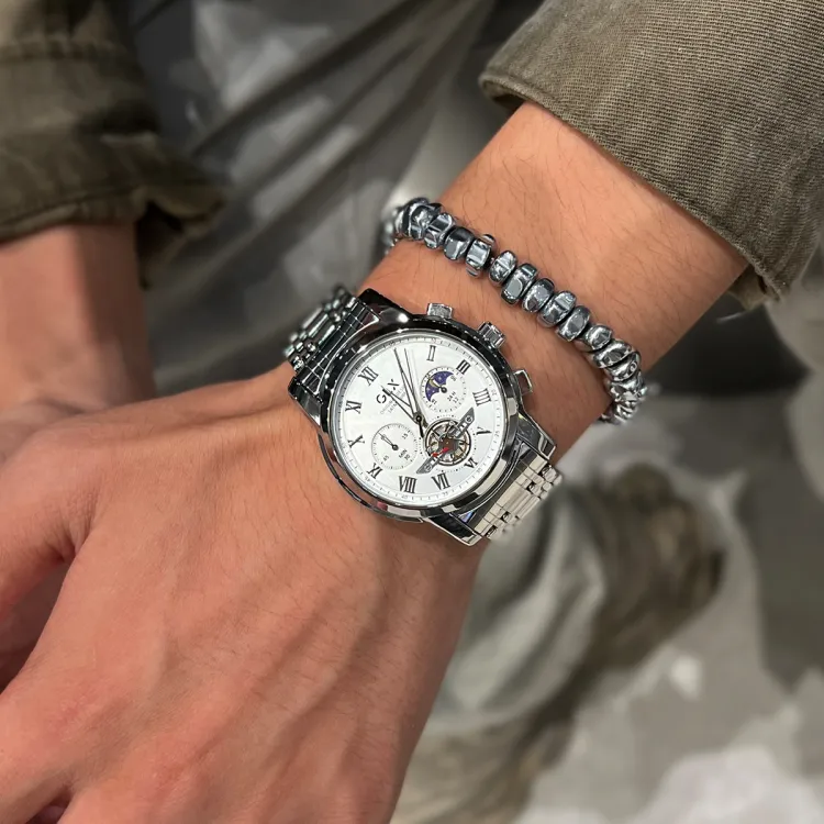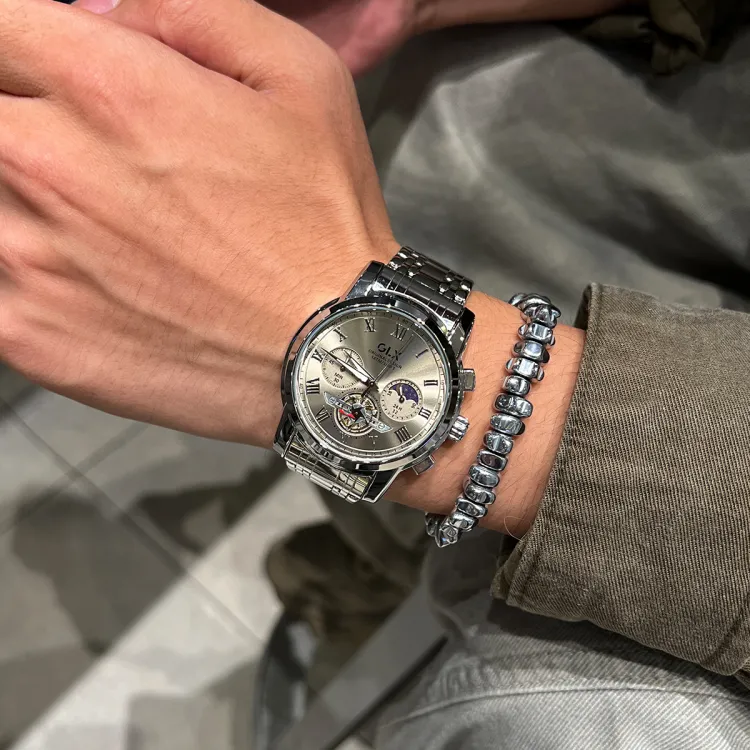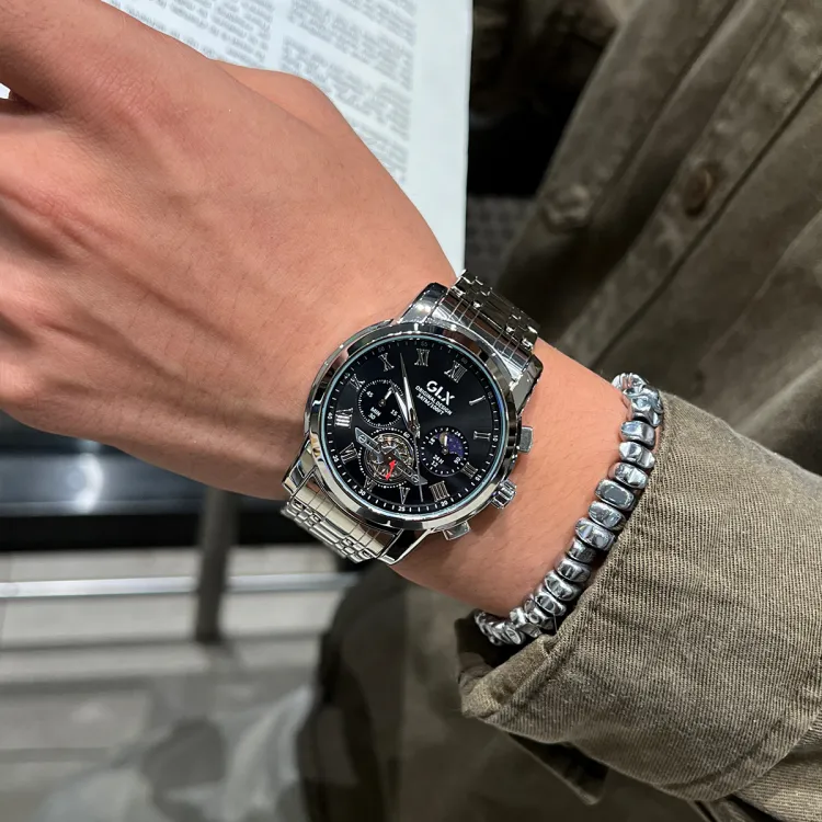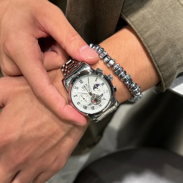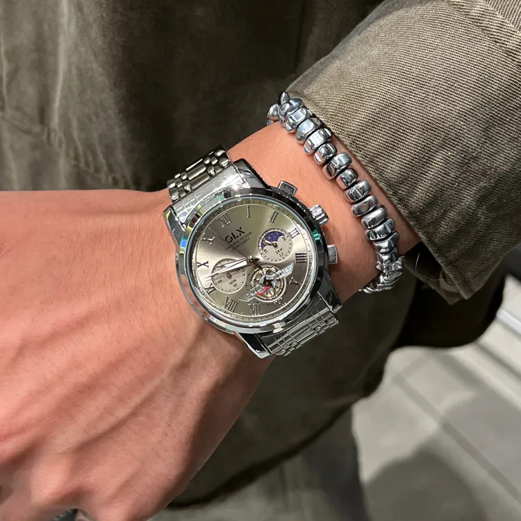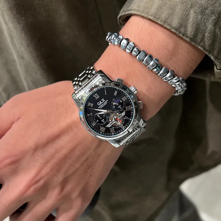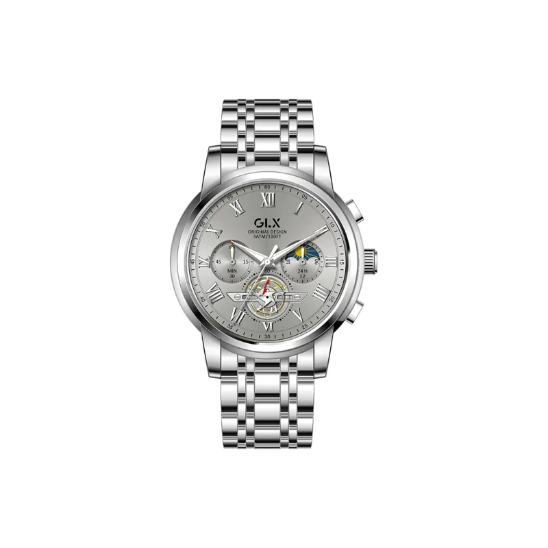 GLX Кварцевый механизм стальной ремешок мужские часы белый циферблат