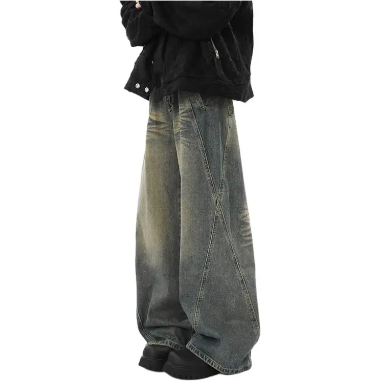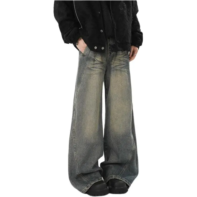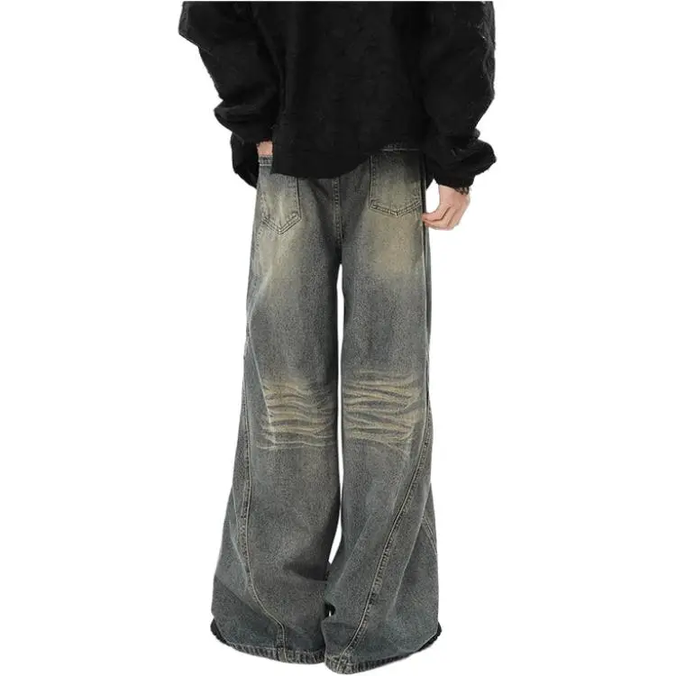 GMTK Винтажные синие регулируемые мужские джинсы с высокой посадкой