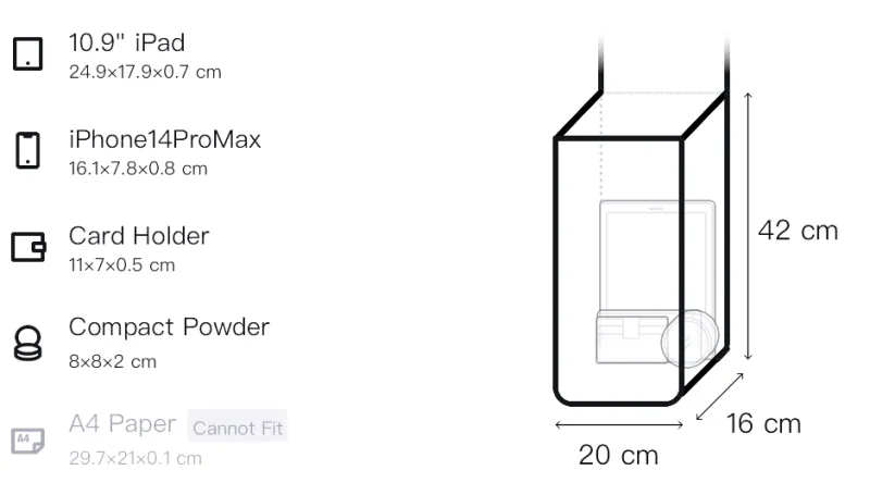 Верхняя одежда Длина: 20 см, Низ Длина: 30 см, Тело Ширина: 16 см, Тело Длина: 42 см