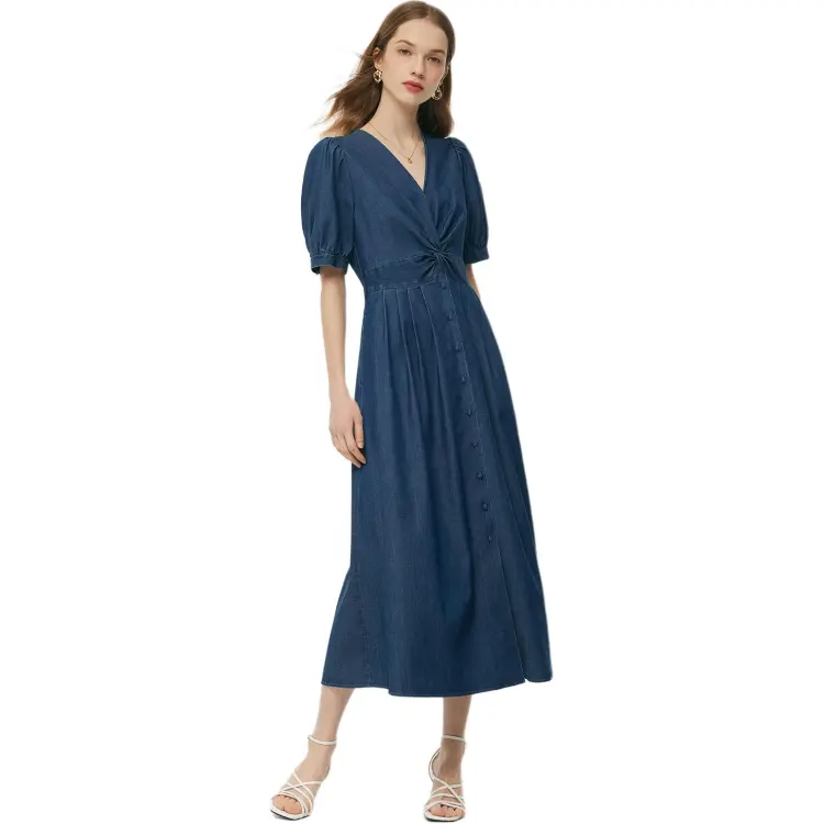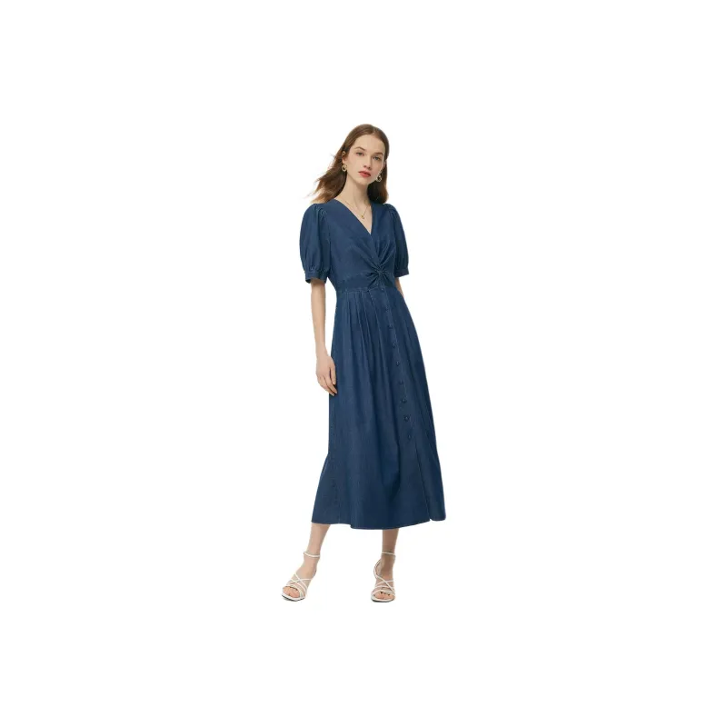 GOELIA Короткий рукав Платье Женское 75U Джинсовый синий