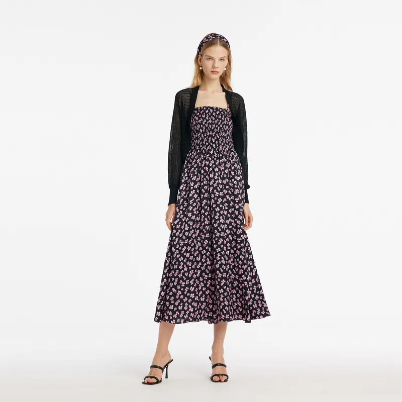84D Черный подошва с глубоким розовым бантом и принтом