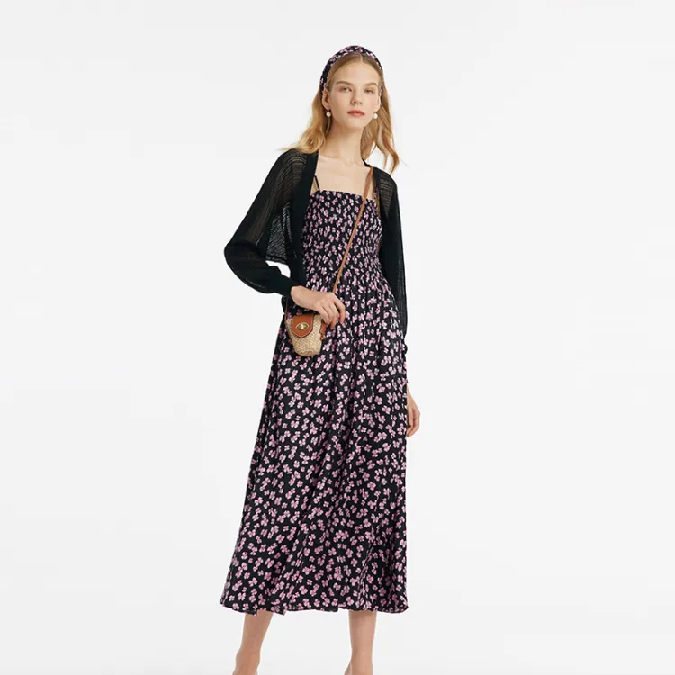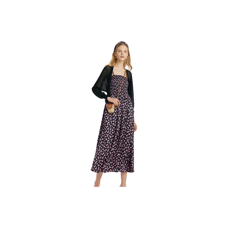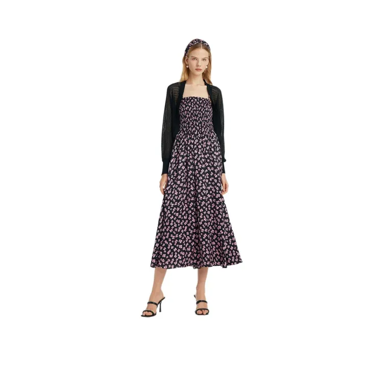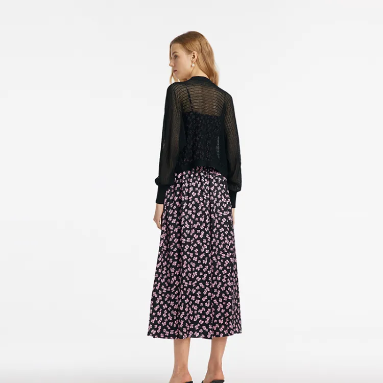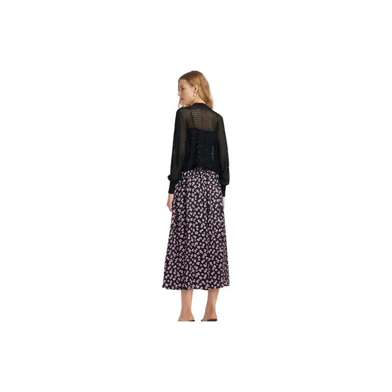 GOELIA 84D Черная подошва с Deep Розовый Бант Принт Женские Комплекты с юбкой