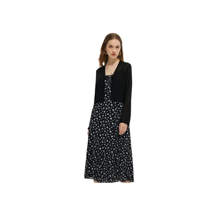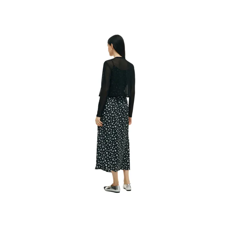 GOELIA 8BD Черная подошва, экрю с маленьким розовым принтом, женские комплекты с юбкой