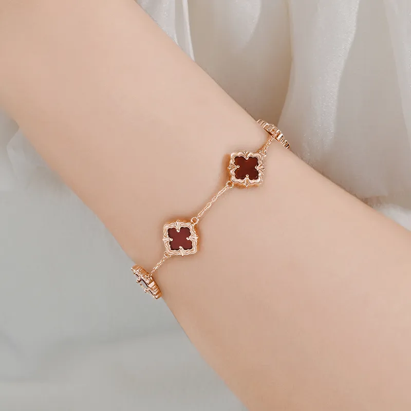 Стиль:Браслет с четырехлистным клевером, одиночный, цепь, позолоченный медный