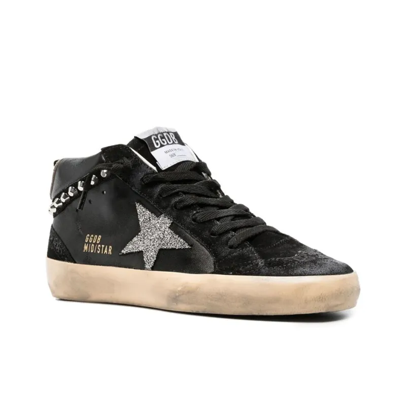 Golden Goose Mid Star Стильные Скейтбординги Женские Черный Эффект Потертости