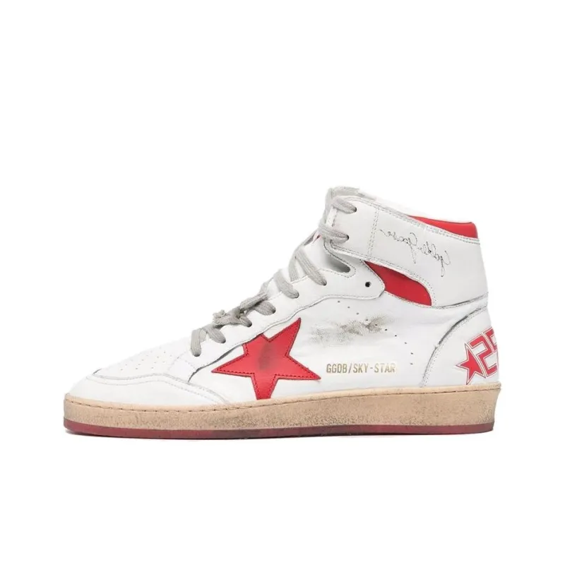 Golden Goose Лазурь Звезда High Топ Стильные Скейтбординги Мужской Белый Красный Потертый