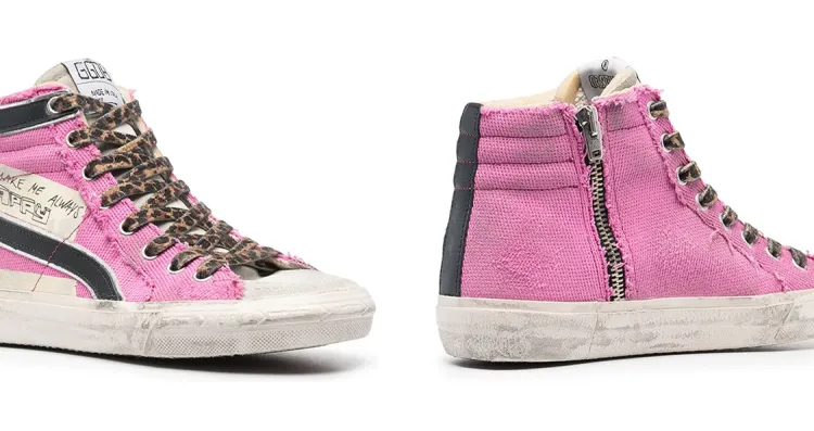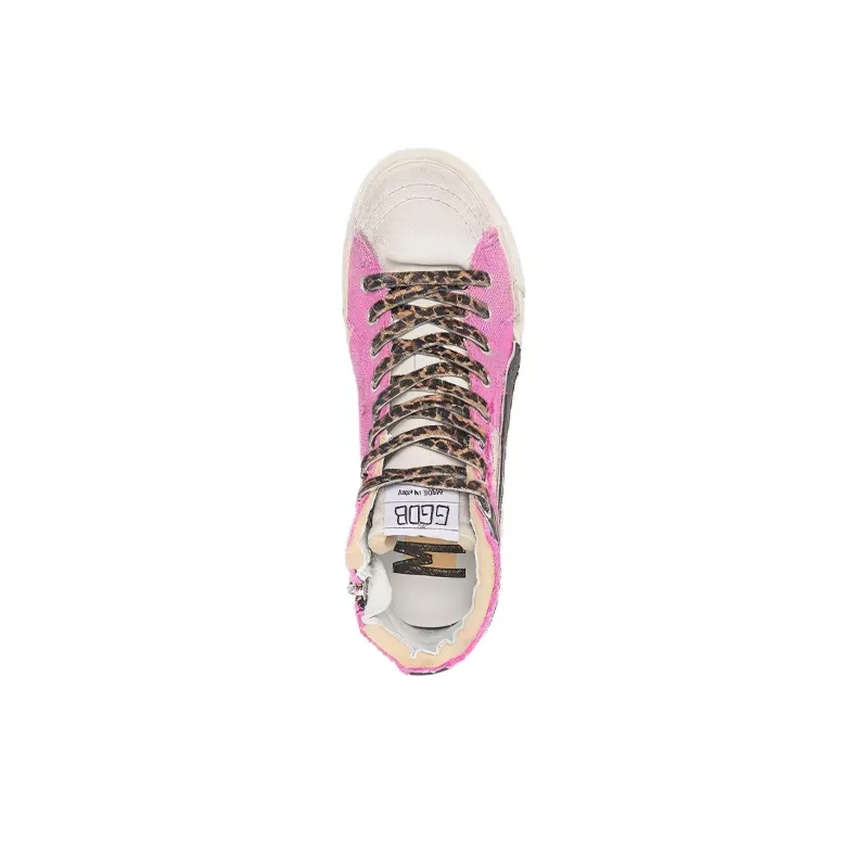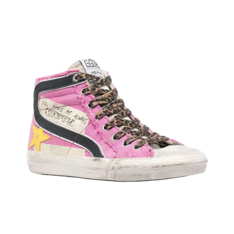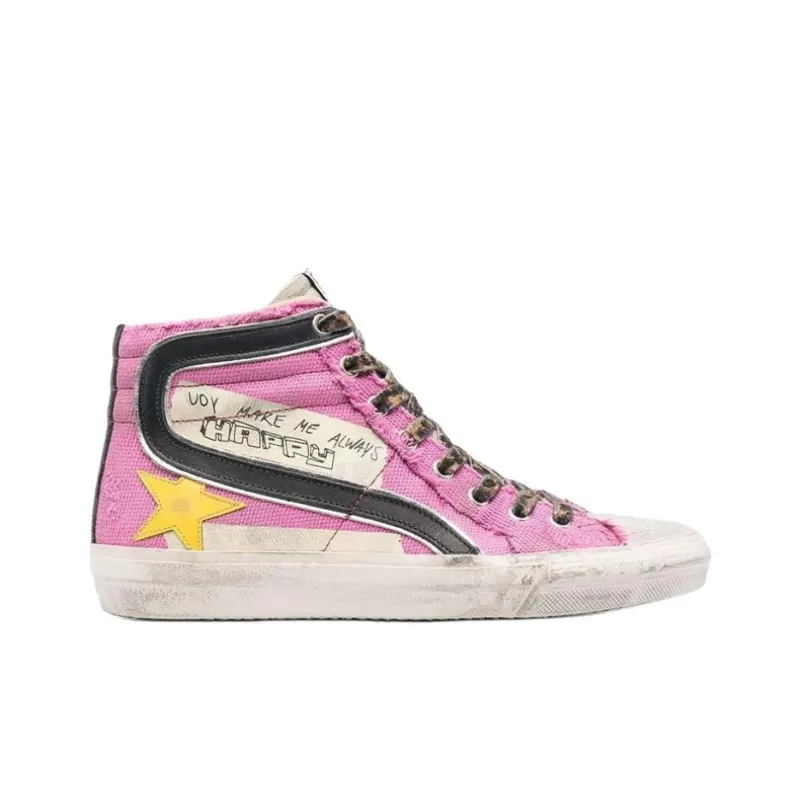 Golden Goose Slide High Топ Кеды Женские Розовый Потертый Позиционирование Стиль