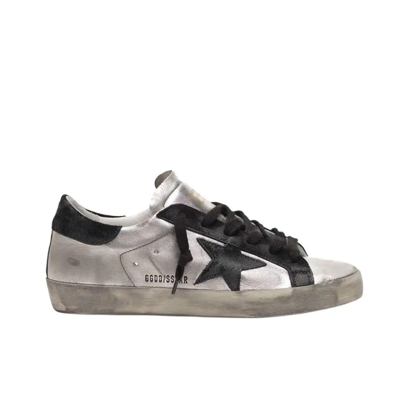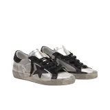 Golden Goose Супер Звезда Низкий Топ Стильные Скейтбординги Женские Серебряный Черный Каблук Потертый