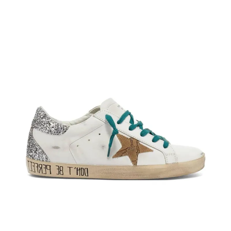 Golden Goose Супер Звезда Стильные Скейтбординги Женские Белые Серебряные Потертые