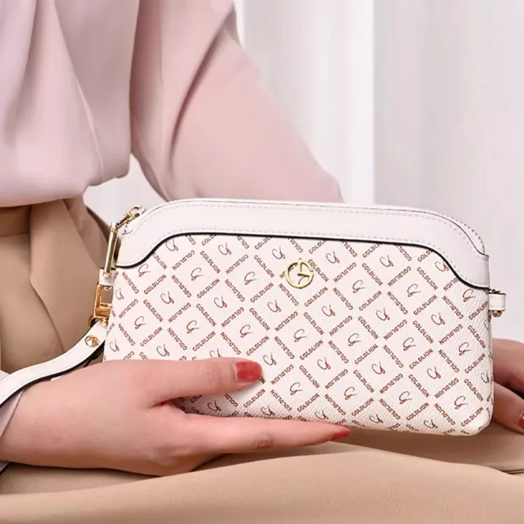 GOLDLION Клатч из искусственной кожи средний женский цвет экрю коричнево-красный