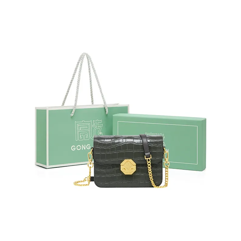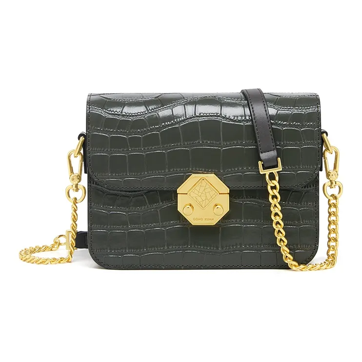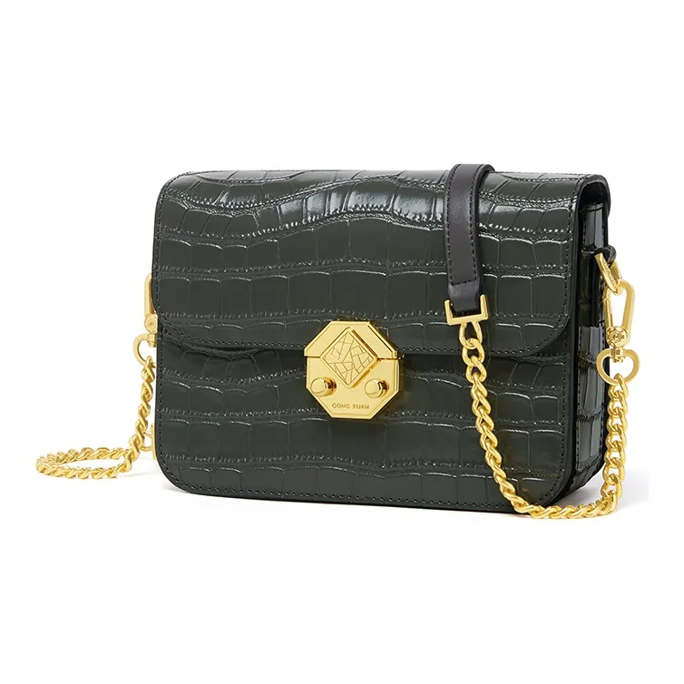 Gong Xuan Крокодил Эффект Топ Layer Воловья кожа Кожа Сумка через плечо Обычный Женские Элегантный циановый