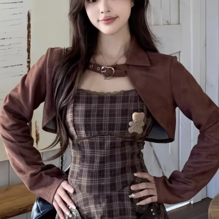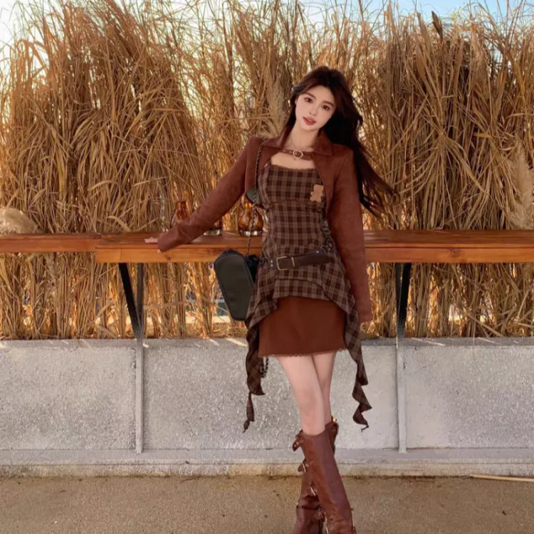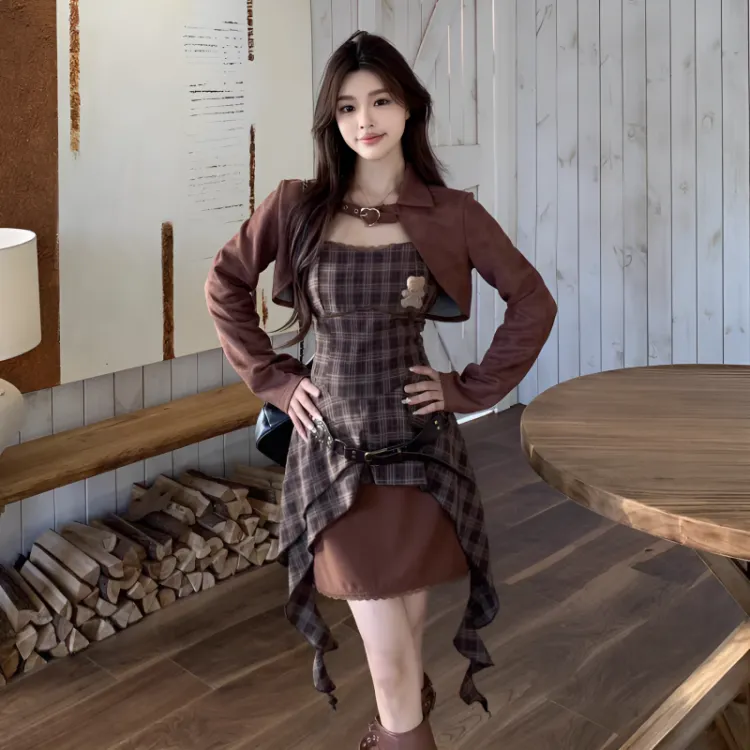 Комплект:Кофе Пальто + Платье-камзол [Наборы одежды]