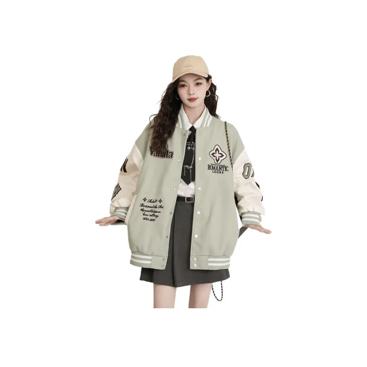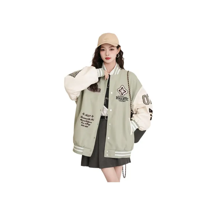 GORGEOUSIDEA Зеленый бейсбол UNIFORM Женские Куртки
