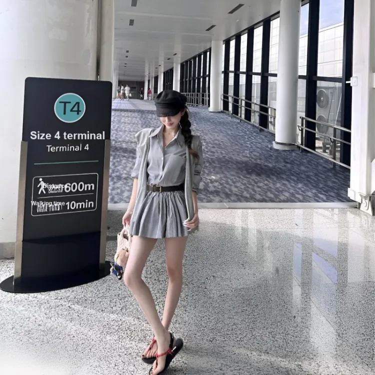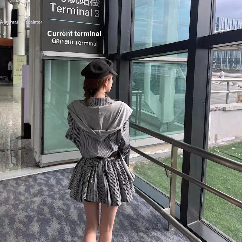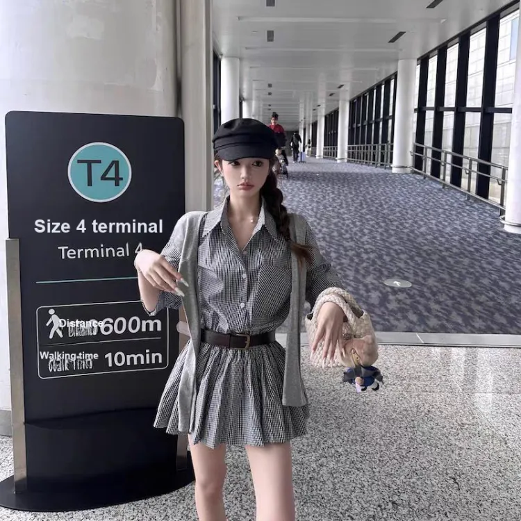 Серое платье в клетку