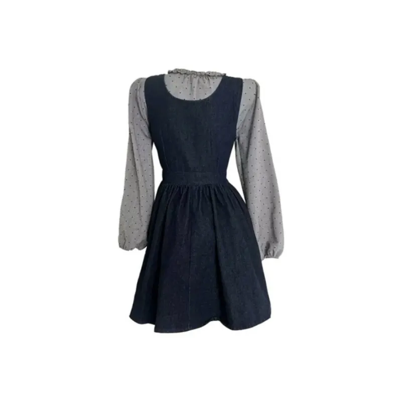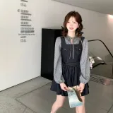 Топ + Юбка из денима с подтяжками