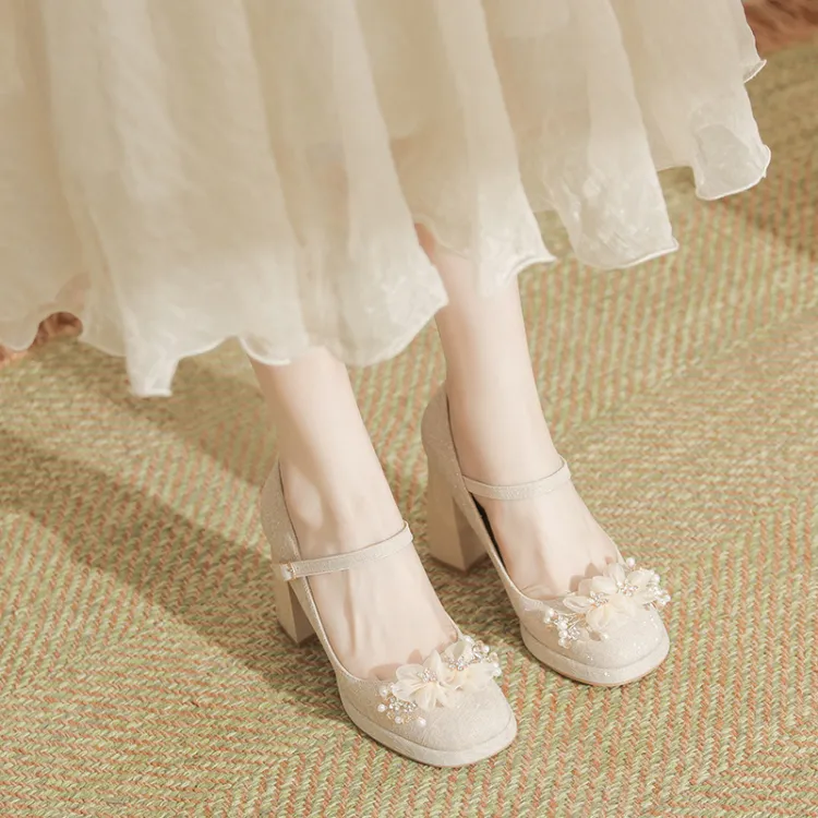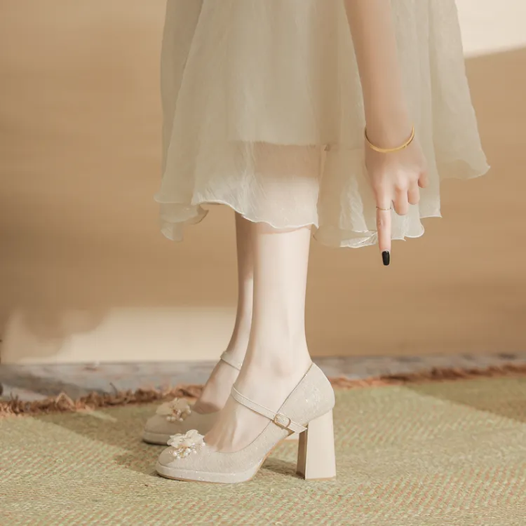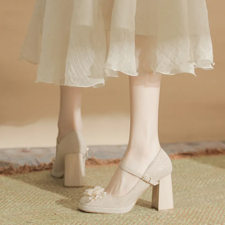 GOSO Грубый каблук Туфли Мэри Джейн Женские Абрикос