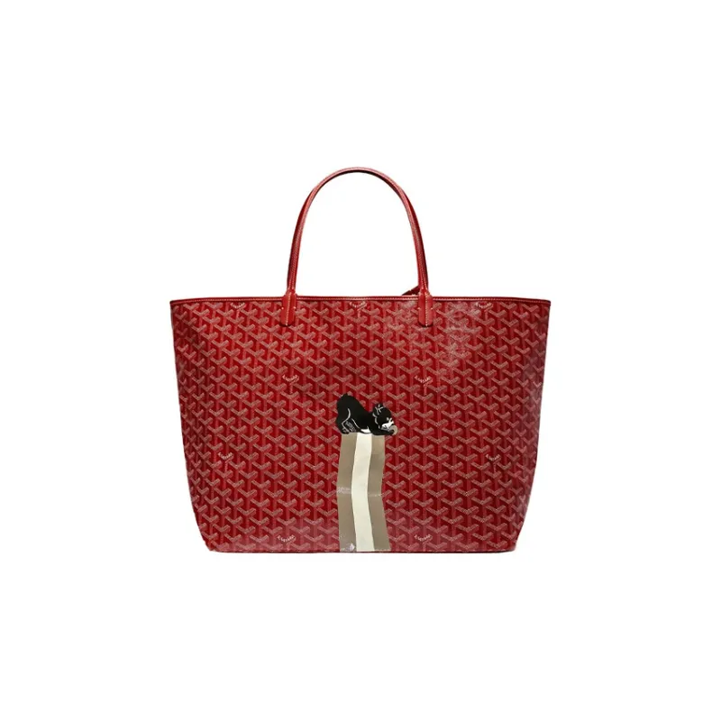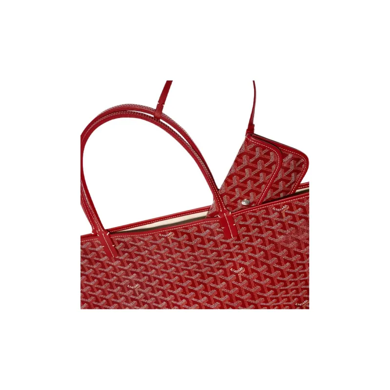 GOYARD Saint Louis Холст Телячья кожа Комбинированная Сумка Тоут Сумка на одно плечо Большая Унисекс Красная