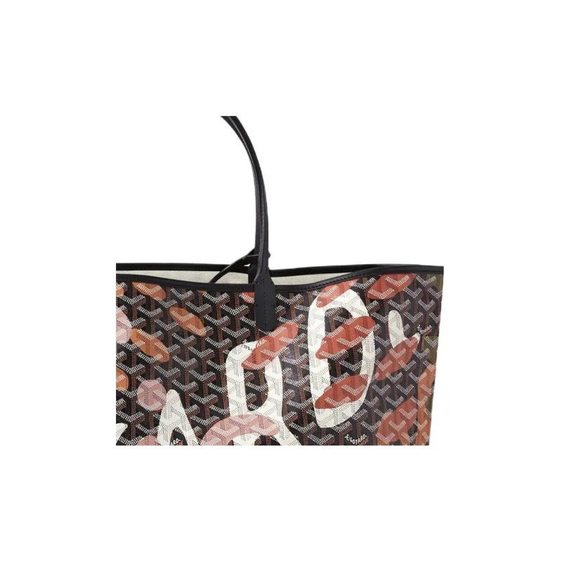 GOYARD Saint Louis Холст и Кожа Комбо Тоут Сумка Одно Плечо Сумка Большая Унисекс Черный Розовый