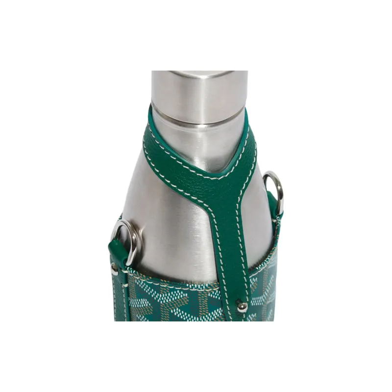 GOYARD YONNE Goyardine Холст с Chevroches Телячья кожа Водяная бутылка Сумка Сумка через плечо Маленькая Унисекс Зеленая