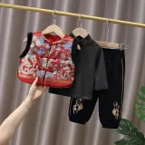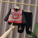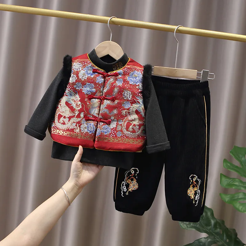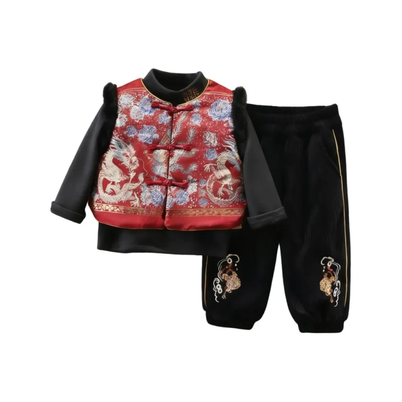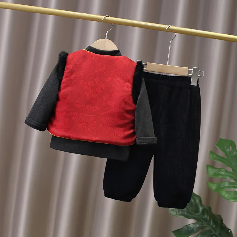 Цвет:Комплект одежды (Красный жилет + Черный свитшот + Черные штаны)