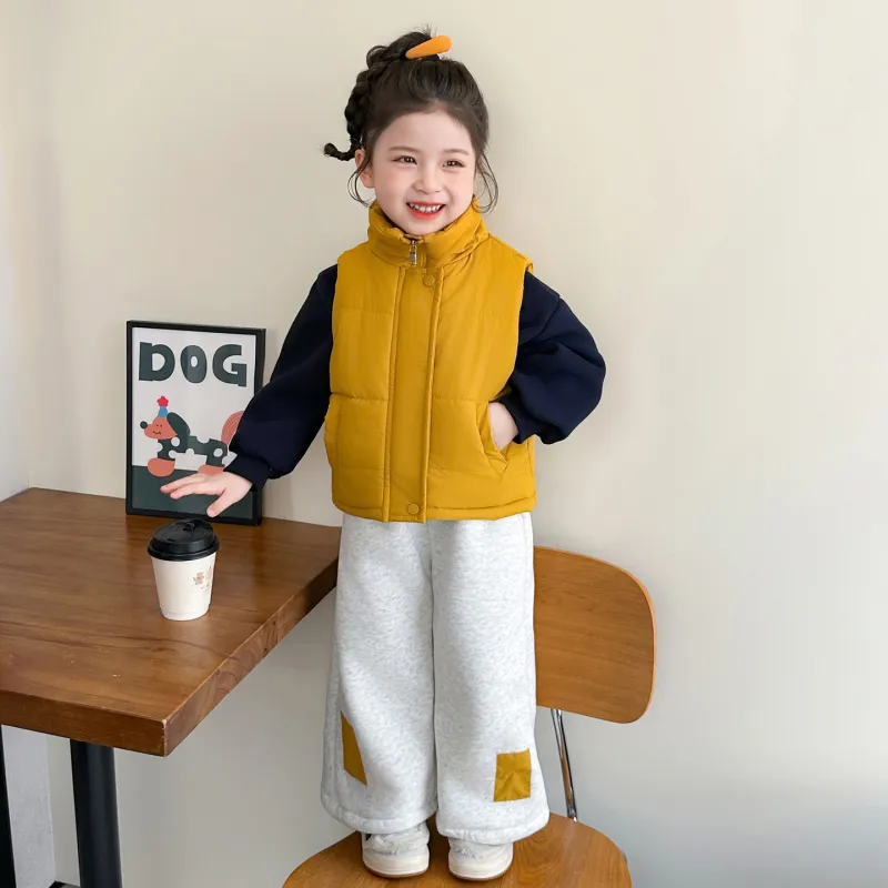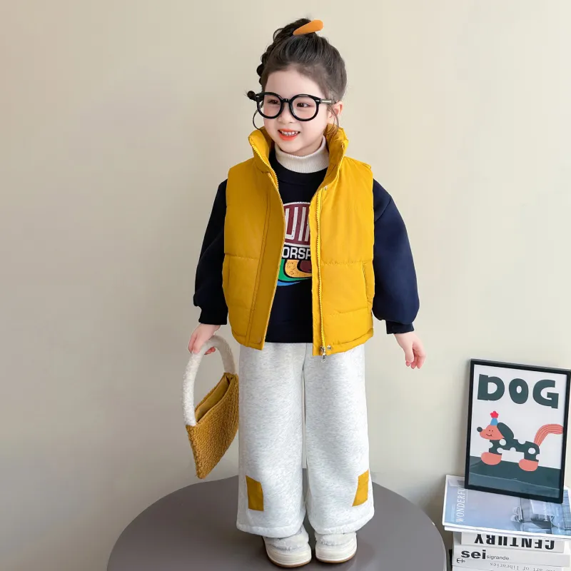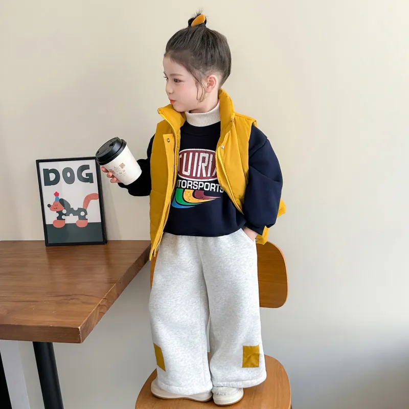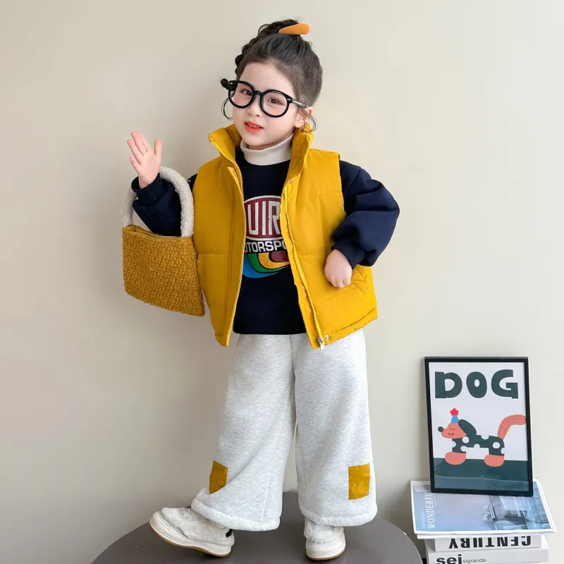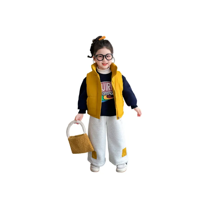Цвет:Комплект одежды (Желтый жилет + Черный свитшот + Серо-бежевые штаны)