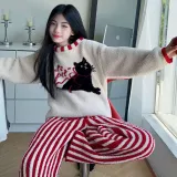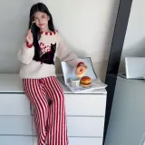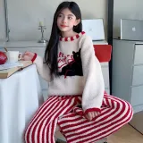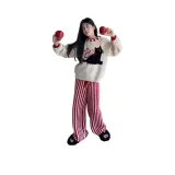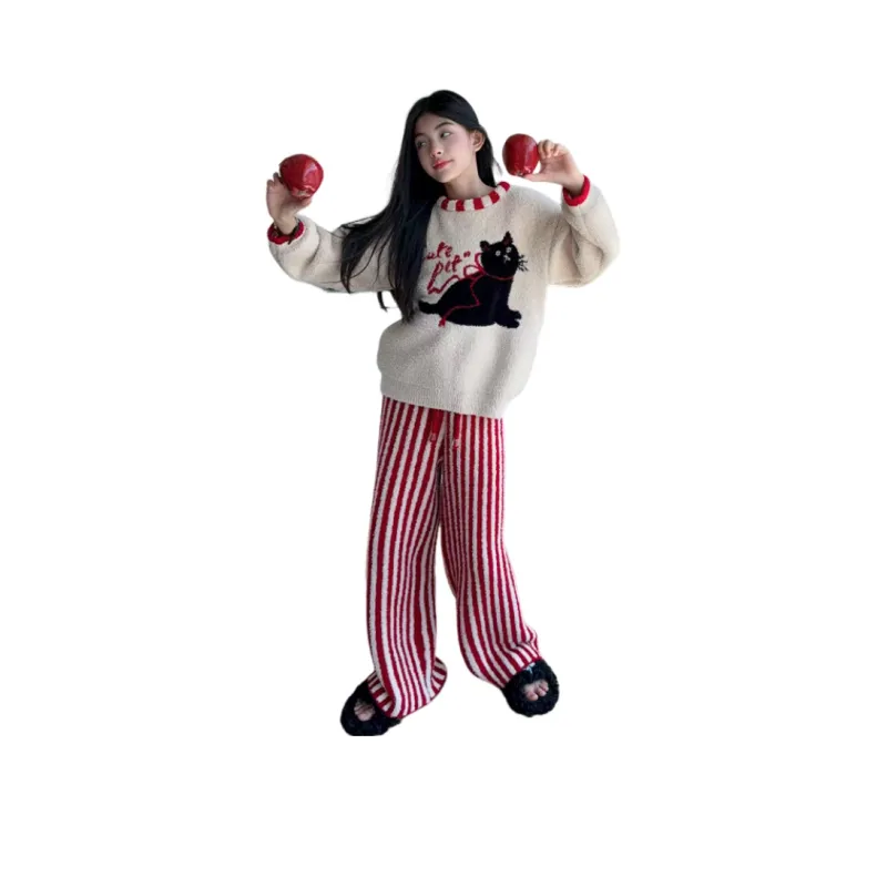 Цвет:Комплект одежды (Абрикосовый топ + Красный низ с полосами)
