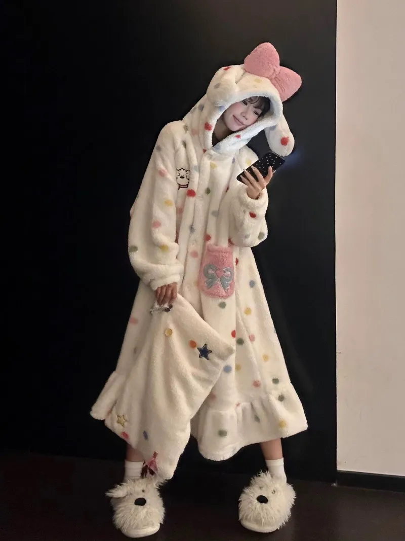 GOYN Гороховый узор Щенок Плащ Женские Банные халаты