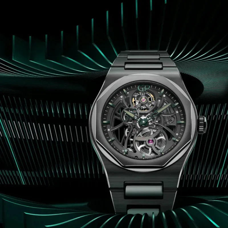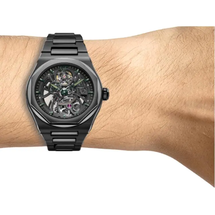 GP Laurel Series Автоматический Механический Часы Мужские 42 мм Черепный Циферблат Керамические Оправа Керамический Ремешок
