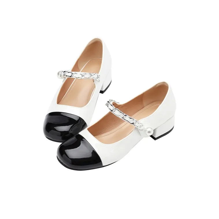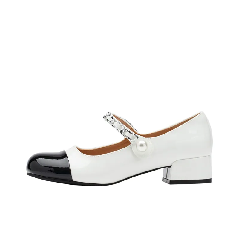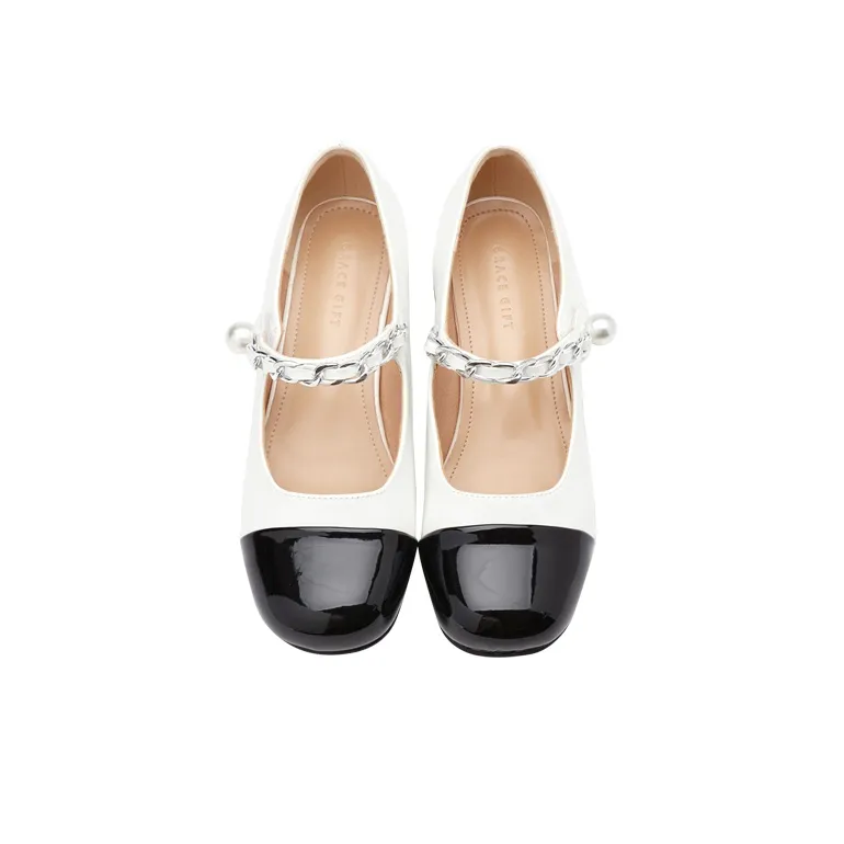 GRACEGIFT Грубый каблук Туфли Мэри Джейн 3,5 см Женские Белые Черные