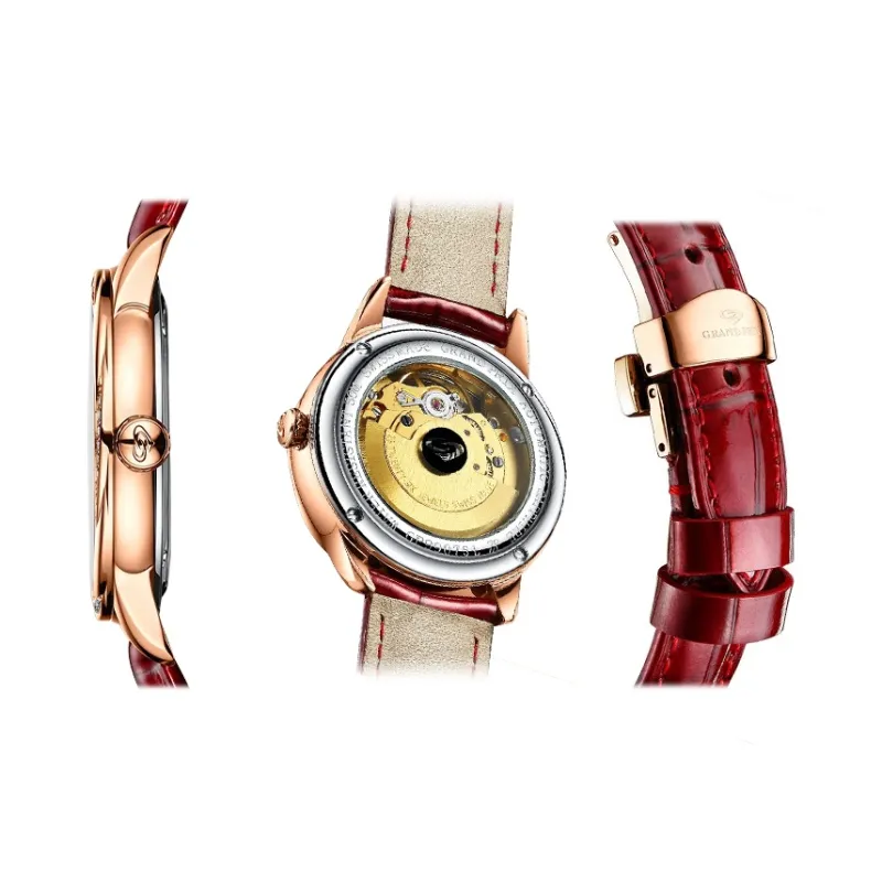 GRAND PRIX Автоматический Механический Механизм Женские Часы Мать Жемчуга Циферблат Часов