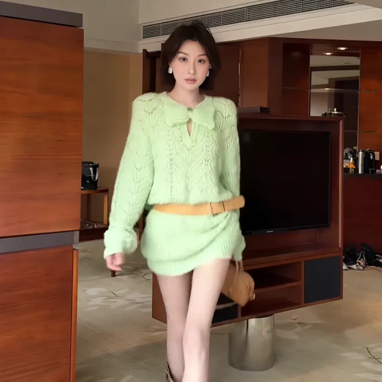 GRAYISMOON Зеленый Женский Трикотаж