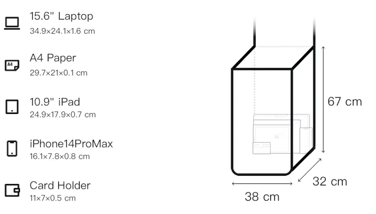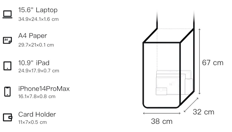 Длина (размер в длину) 38 см, Ширина корпуса 32 см, Длина корпуса 67 см