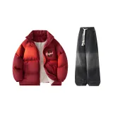 Хлопковый пуховик: 100% полиэстер Штаны: 60,3% хлопок, 20,3% полиэстер, 19,4% другие материалы