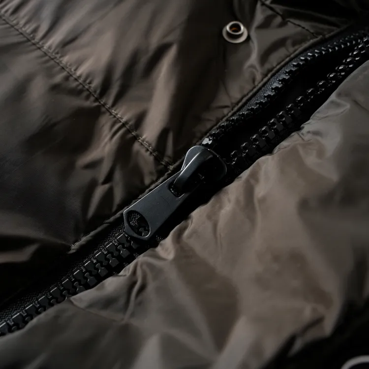 Ткань: 100% полиамид Подкладка: 100% полиэстер Наполнитель воротника: 100% полиэстер Наполнитель тела: 90% белый утиный пух