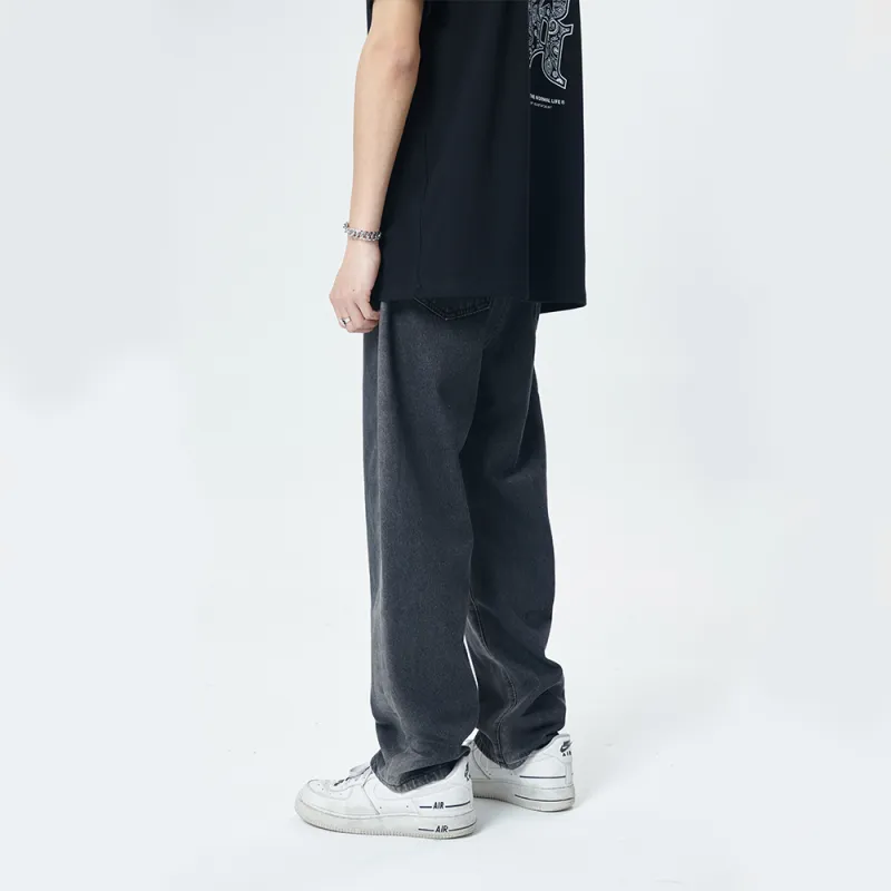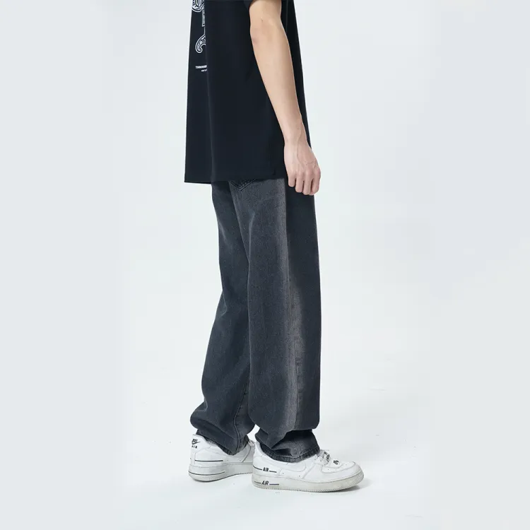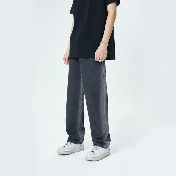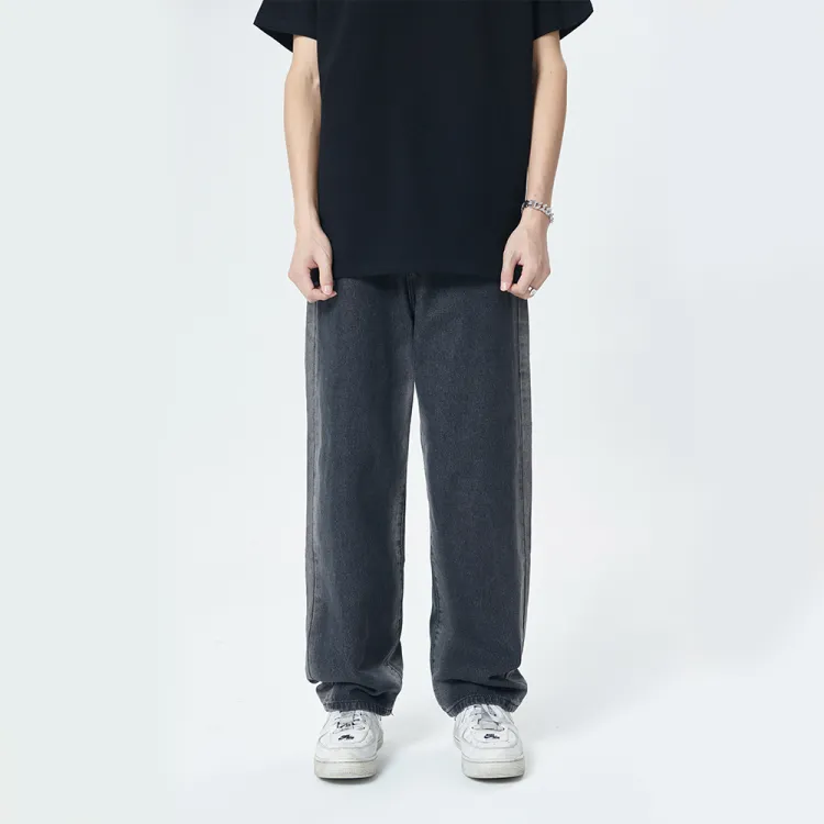 GROOL Прямой крой Брюки Джинсы Унисекс Деним Черный