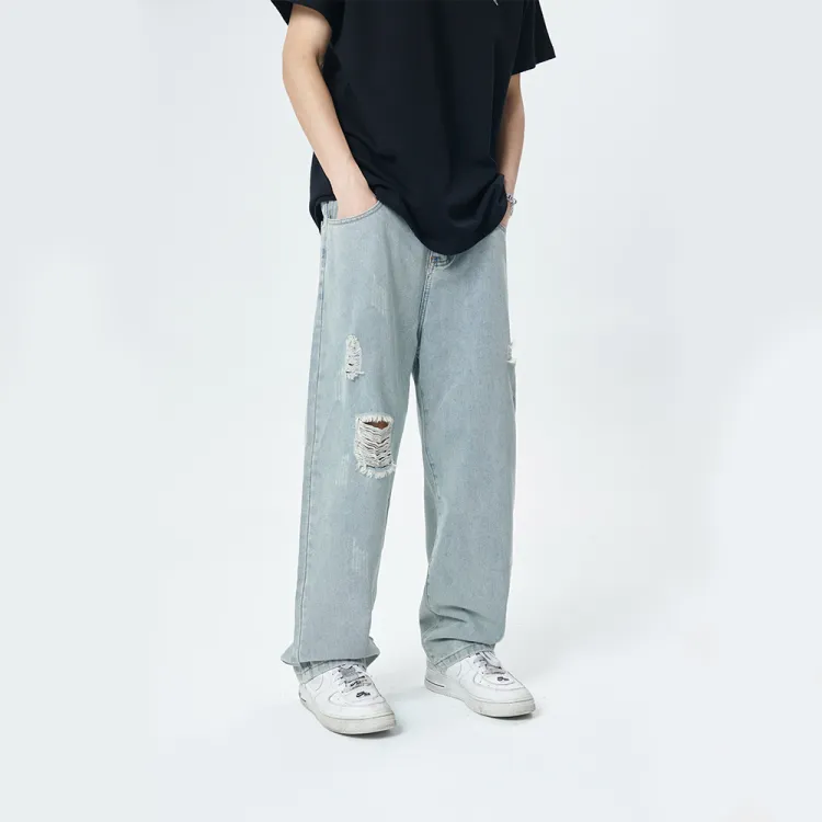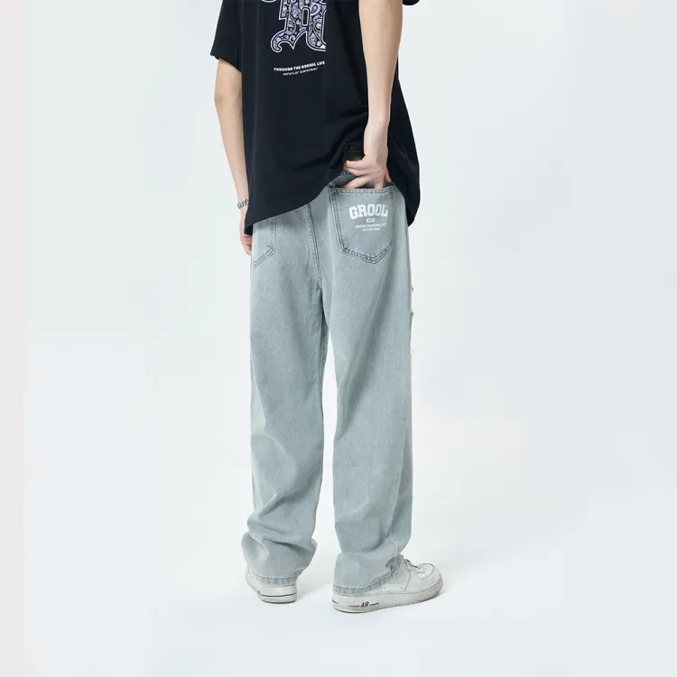 GROOL Прямой крой Брюки Джинсы Unisex Light Синий