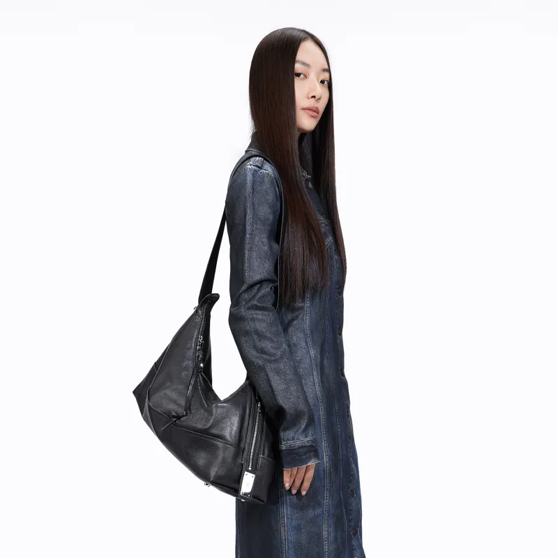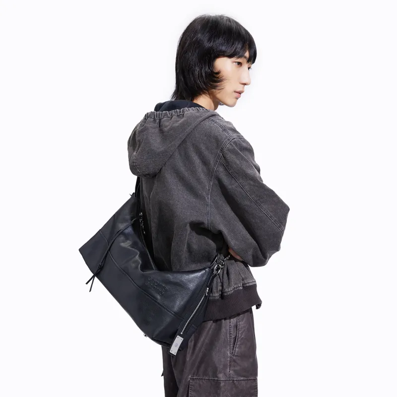 GROTTO Телячья кожа Сумка через плечо XL Унисекс Классический черный