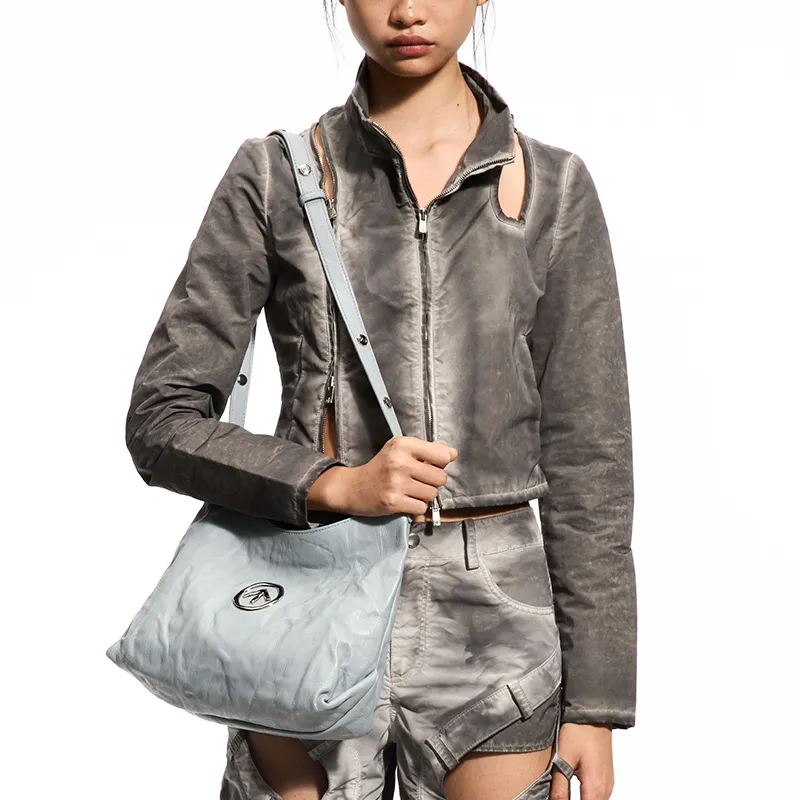 GROTTO Hobo Series Sheepskin One Shoulder Crossbody Soft Bag Standard Unisex Haze Blue