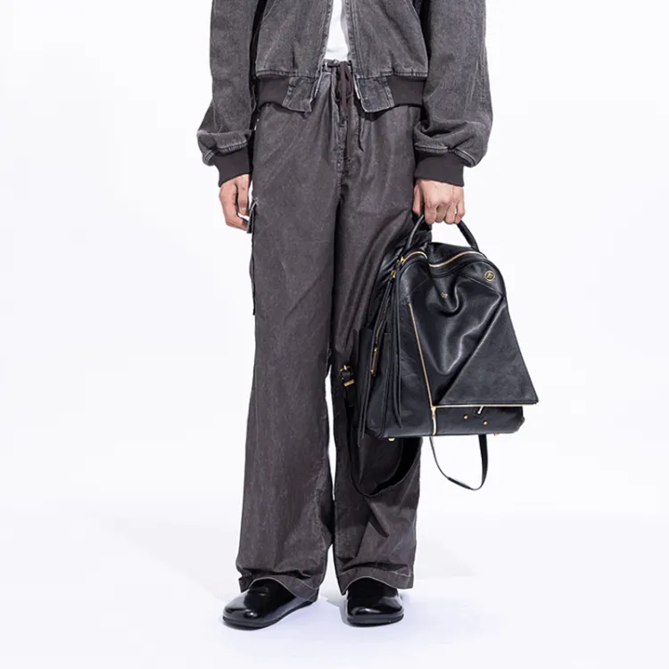 GROTTO Растительное дубление Коровья кожа Рюкзак Стандартный Унисекс Классический Черный Темный шоколад Коричневый