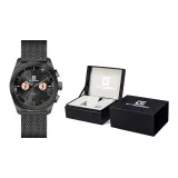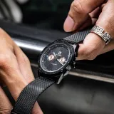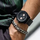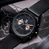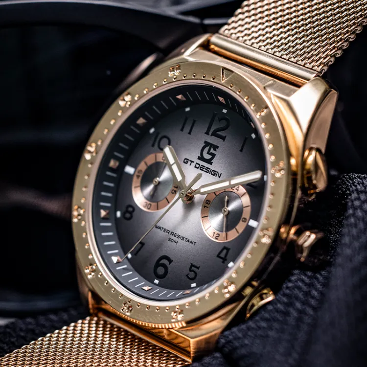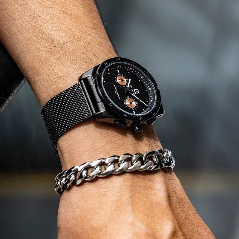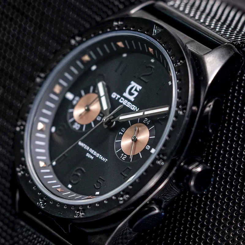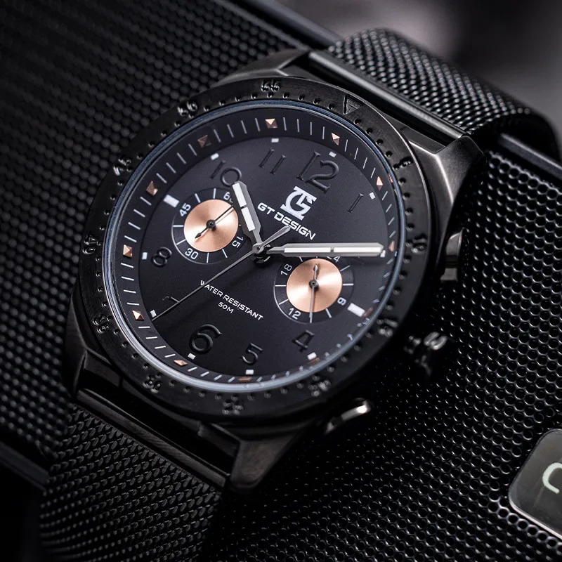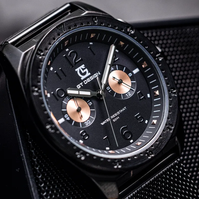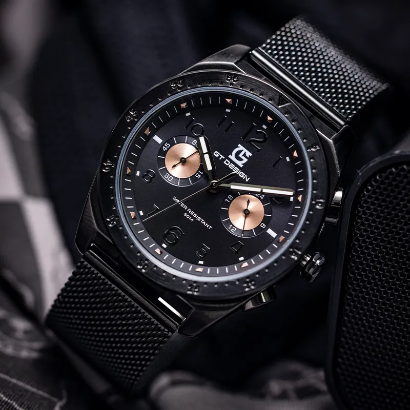 GT DESIGN Черный Warrior Двойной Кварцевый Механизм Стальной Ремешок Часы Мужские Часы Черный Циферблат GTM2023101