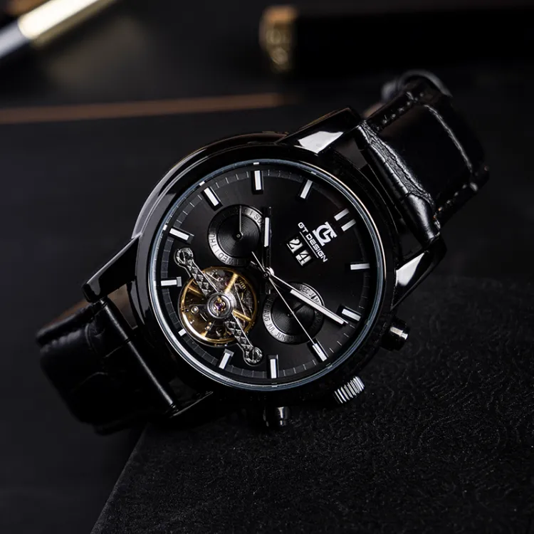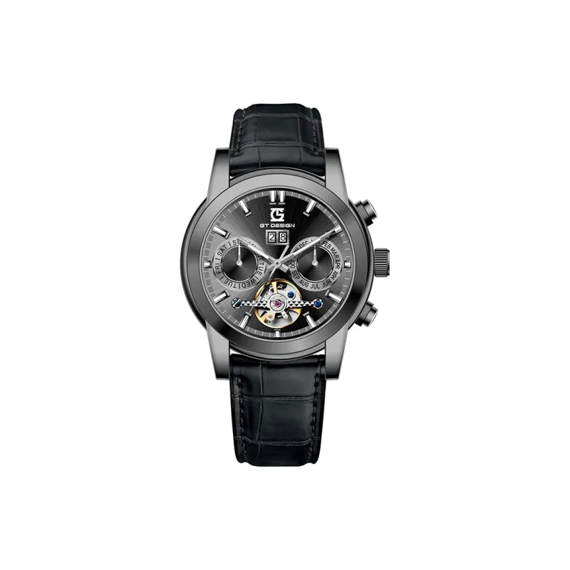 GT DESIGN Многофункциональный THREE Eye Tourbillon FLY Reel Наручные часы Автоматический механический механизм