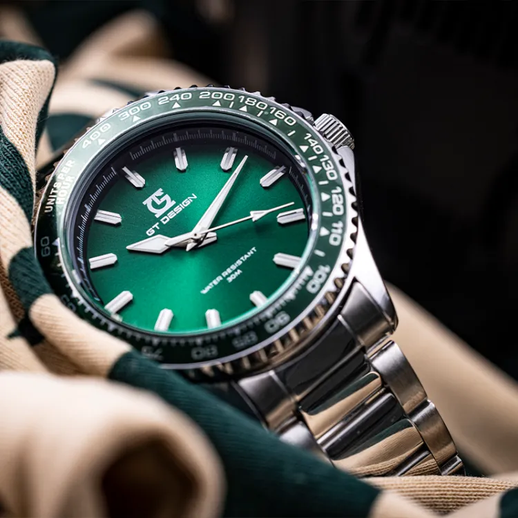 GT DESIGN Кварцевый механизм Часы Мужские Зеленый циферблат