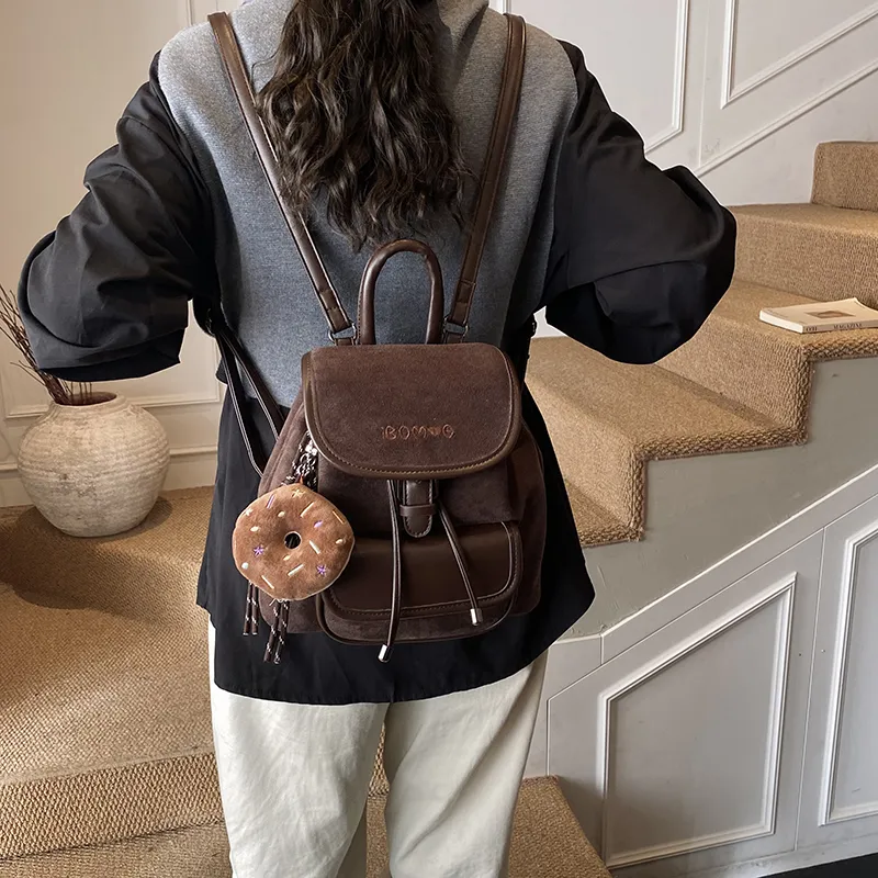 GUANJUNXIAOXIONG Замша Рюкзак Стандартный Женский Кофейный Коричневый Хаки