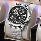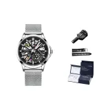 Серебряный корпус с черным циферблатом, сетчатая сумка (включает открывалку для часов, коробку + кожаный ремешок)