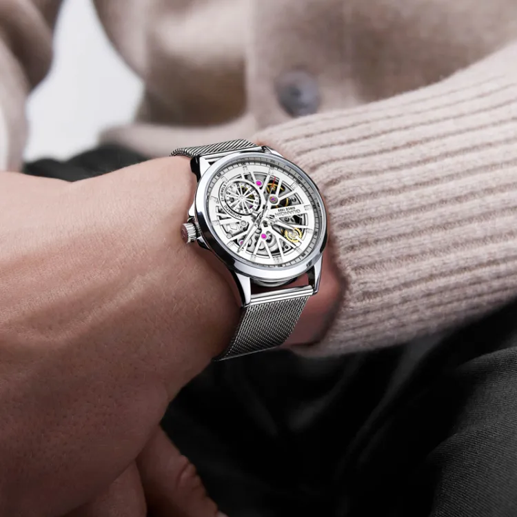 Серебряный корпус с белым циферблатом, сетчатая сумка (включает открывалку для часов, коробку + кожаный ремешок)
