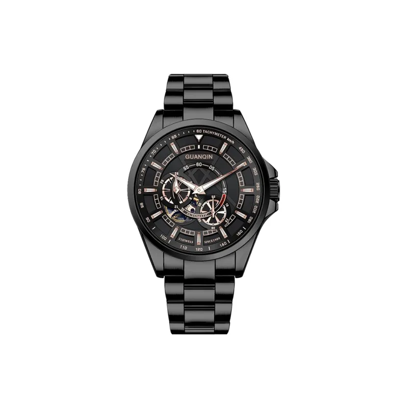 GJ16301 Черный корпус, черный циферблат, стальной ремешок