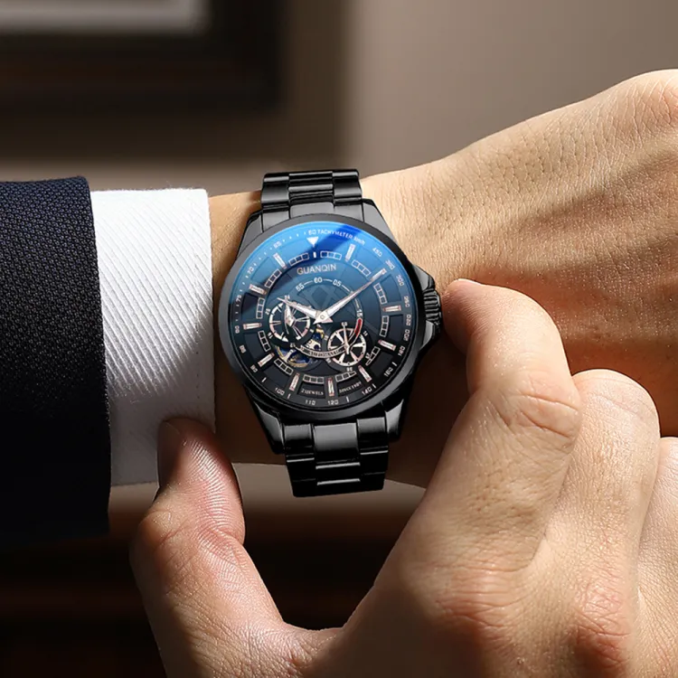 GUANQIN Автоматический Механический Механизм Нержавеющая Сталь Ремешок Часы Мужские Белый Циферблат