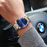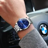 Нержавеющая сталь, синий циферблат, белая сталь, полоска