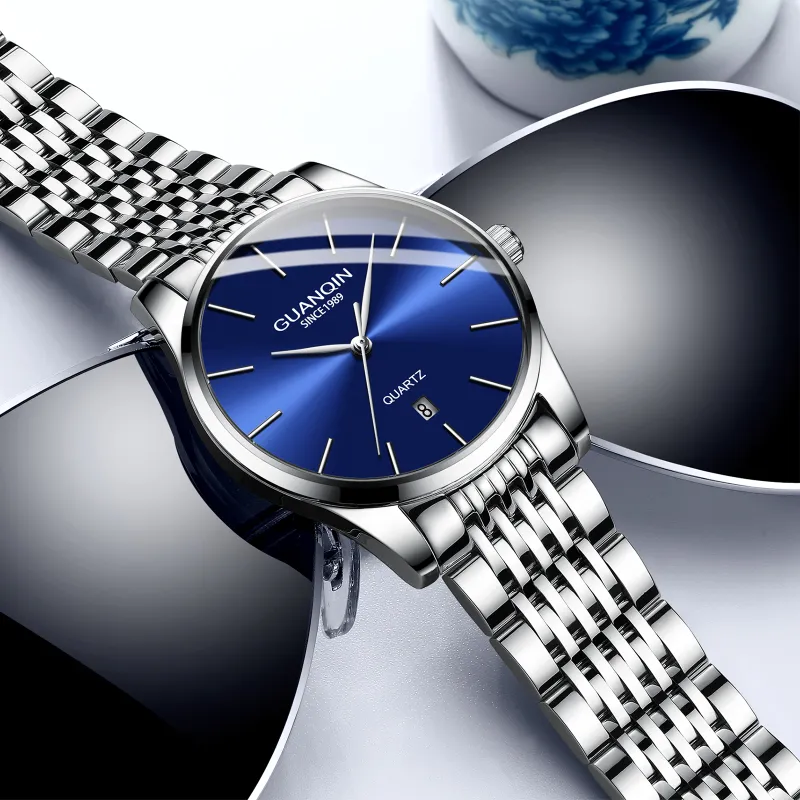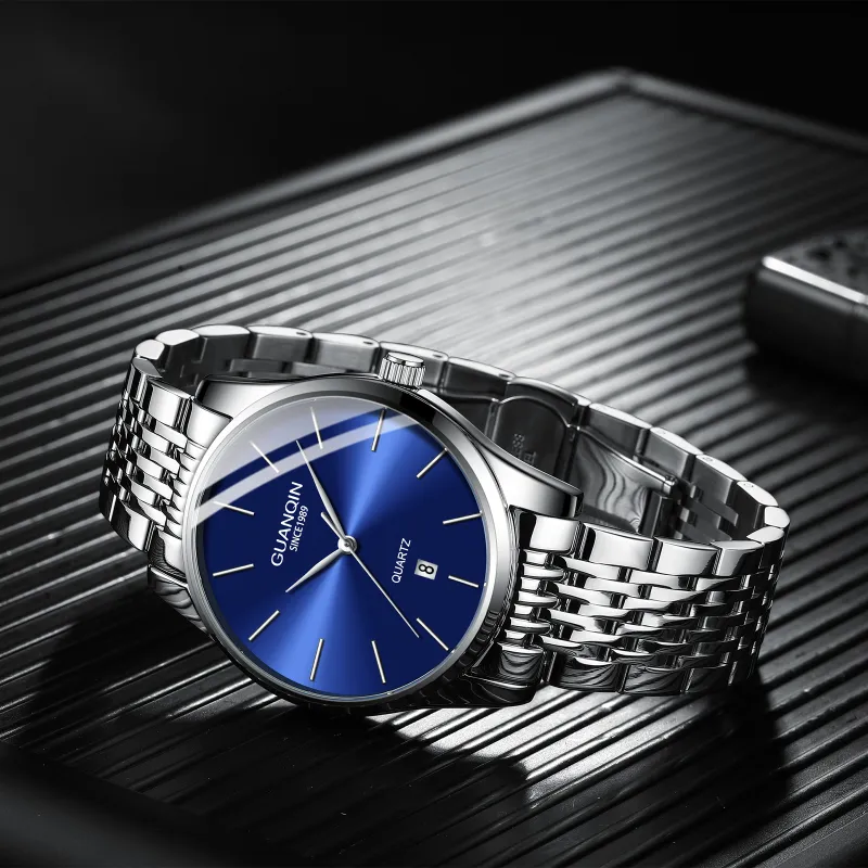 GUANQIN DS19158.BGD Кварцевый механизм ремешок из нержавеющей стали мужские часы белый циферблат