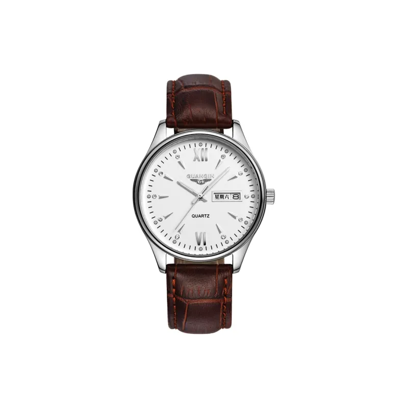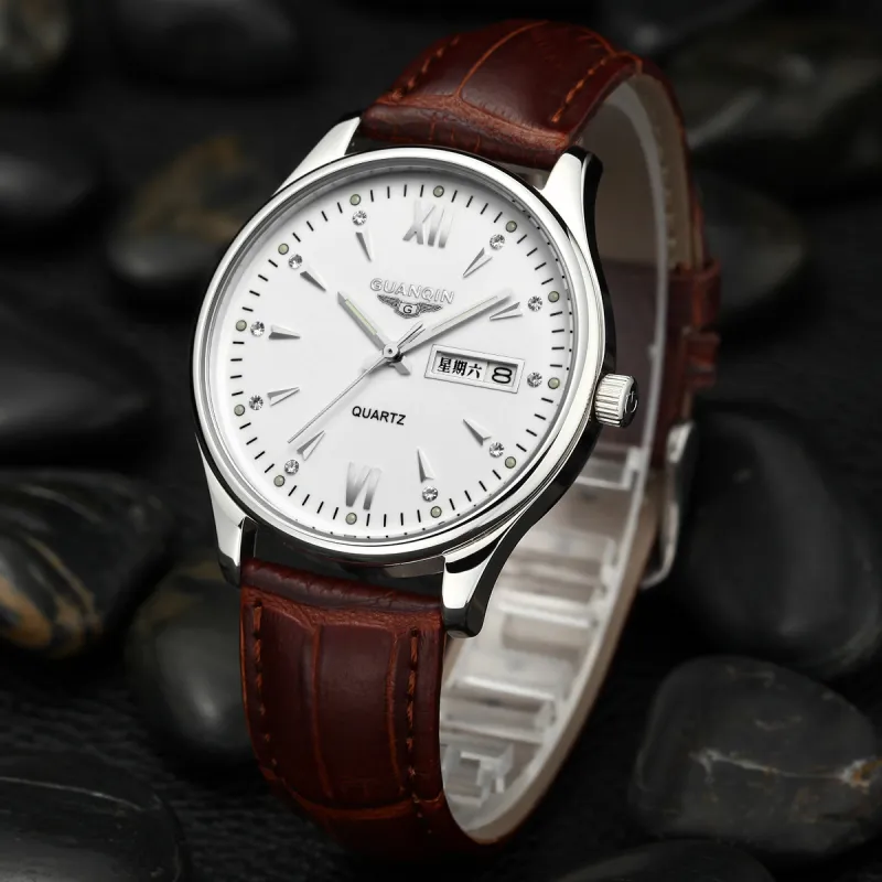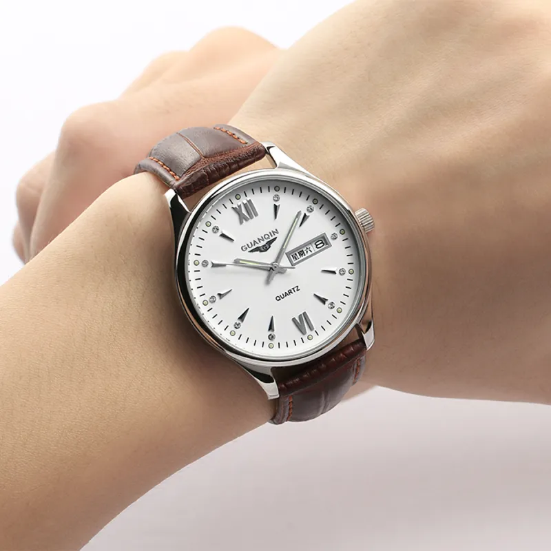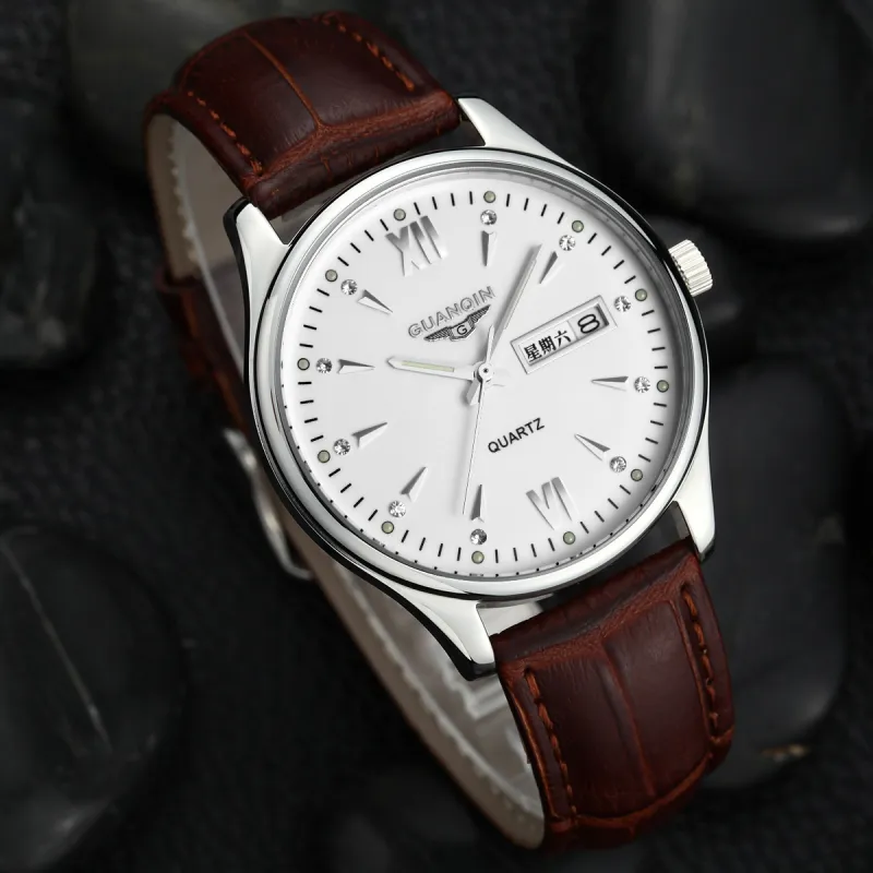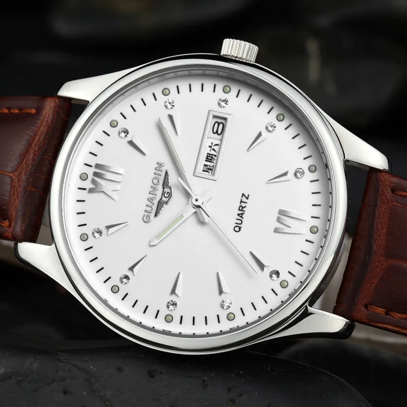 GUANQIN DS80019 A.BBZ Кварцевый механизм Естественная кожа Ремешок Часы Мужские Белый циферблат